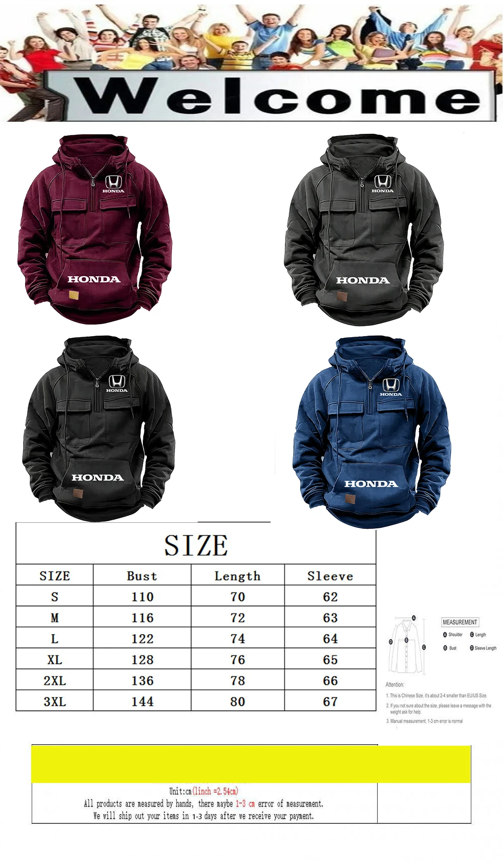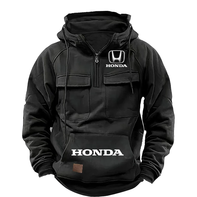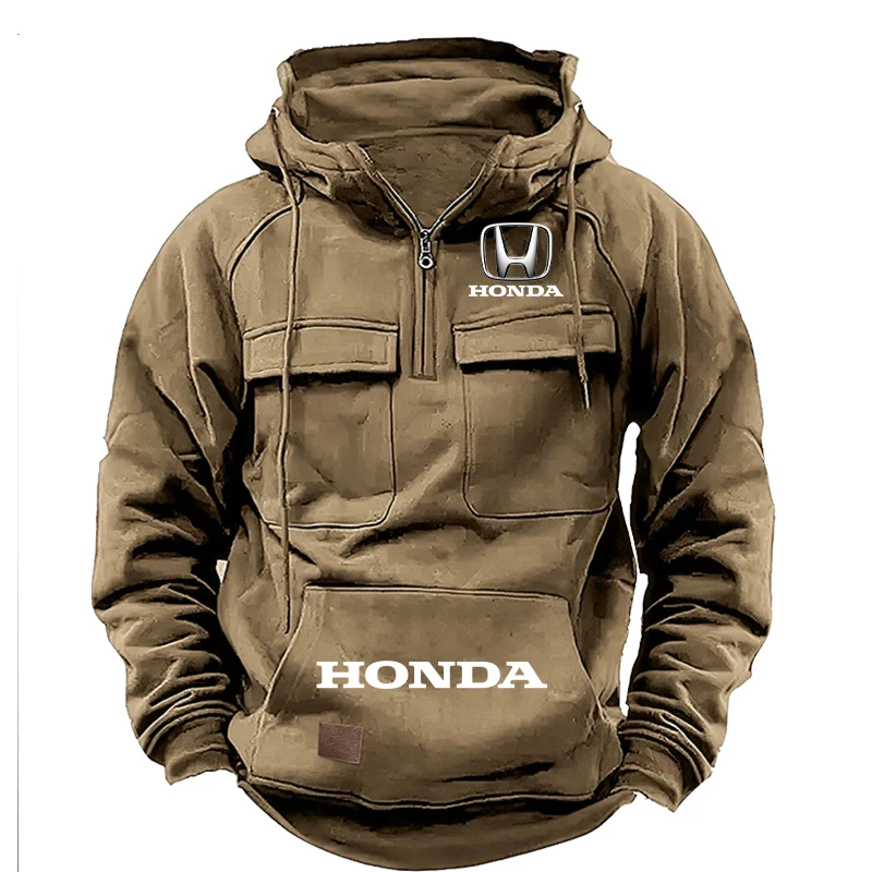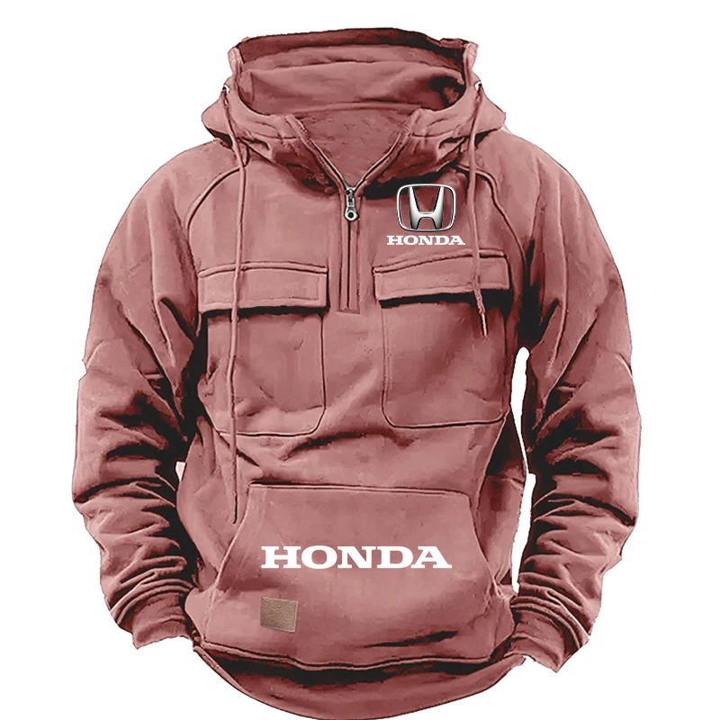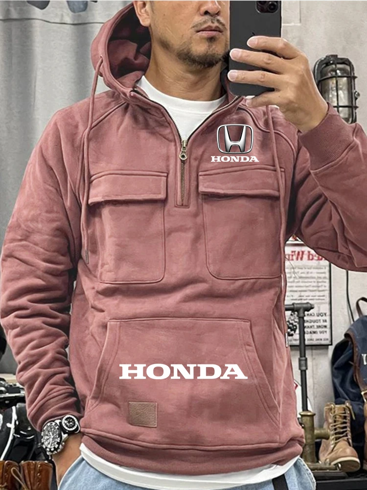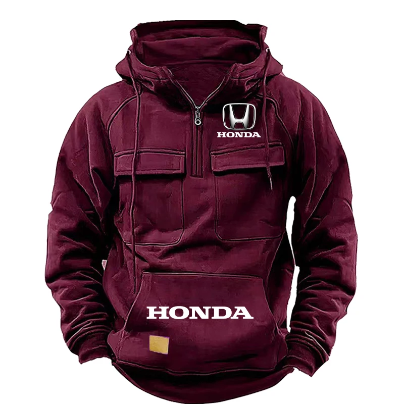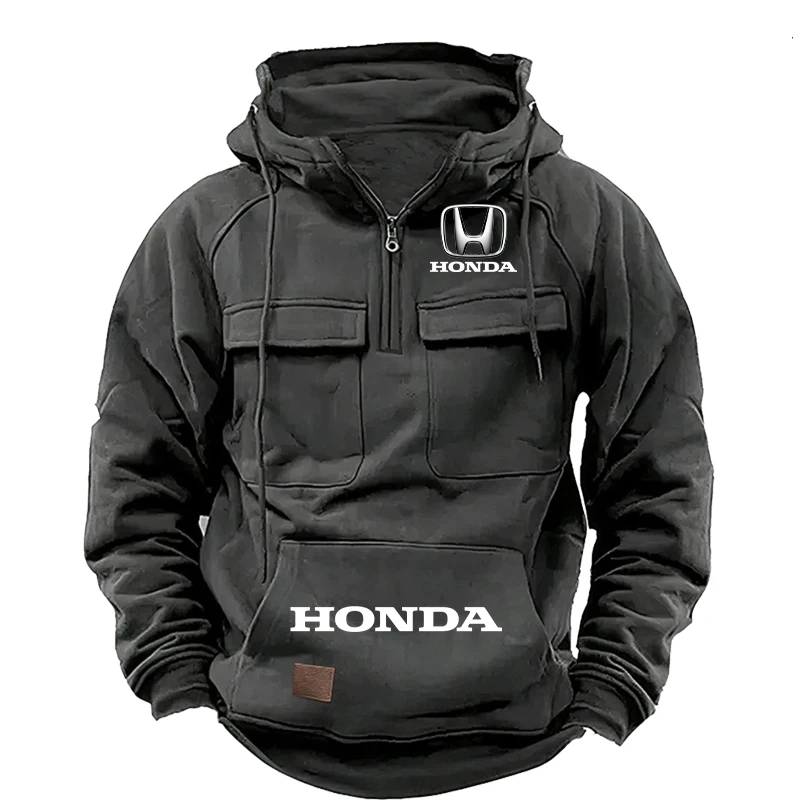 هودي هوندا ريترو سترونجمان الثقيل للرجال بغطاء للرأس وسحاب مبطن بالصوف سميك فضفاض للرجال، ملابس رياضية للدراجات النارية